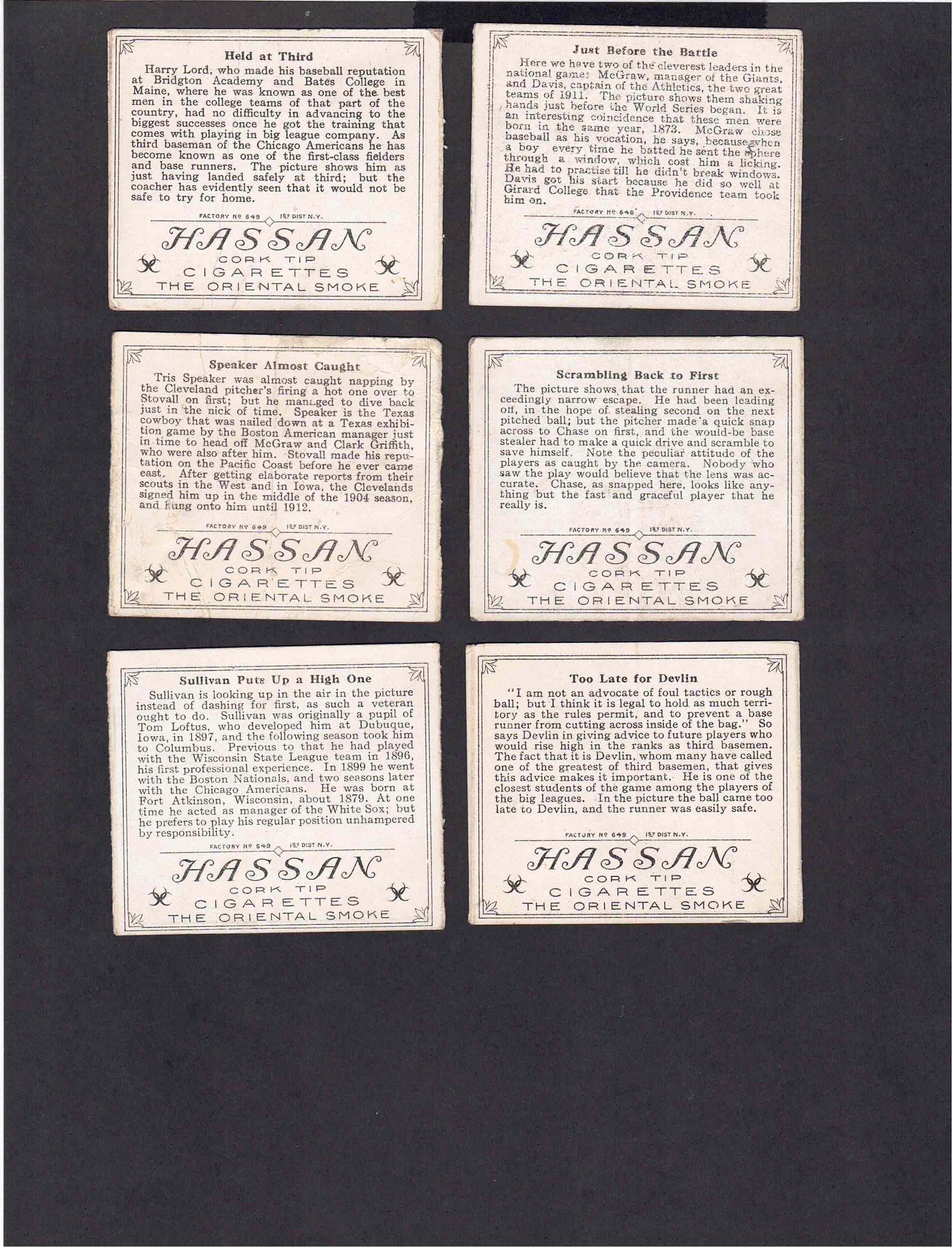 Catching Him Napping (Oakes/Bresnahan) Black Factory 30 Reverse A Close Play at the Home Plate (Wallace/ Pelty) Black Factory 30 Reverse Collins Easily Safe (Collins/Baker))
